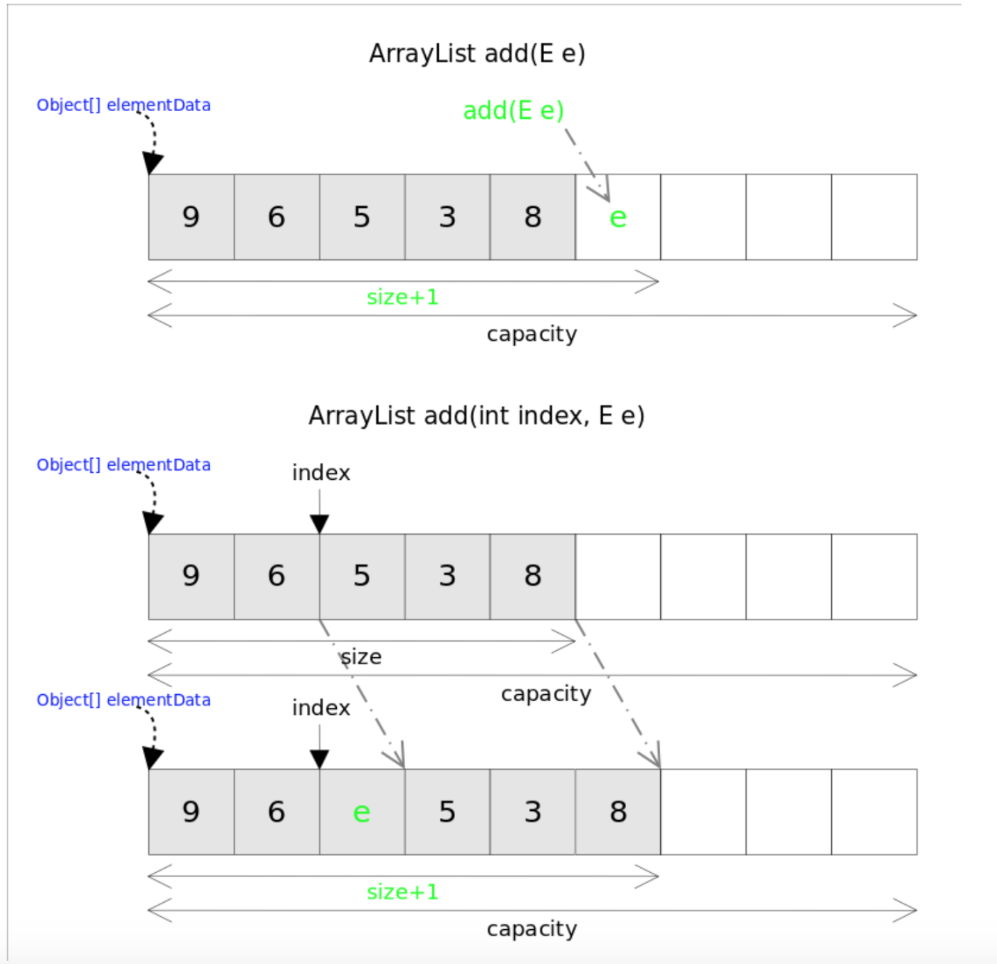 - 当添加元素时,首先会检查当前数组的容量是否足够存放新元素。如果容量不够,则会执行扩容操作。