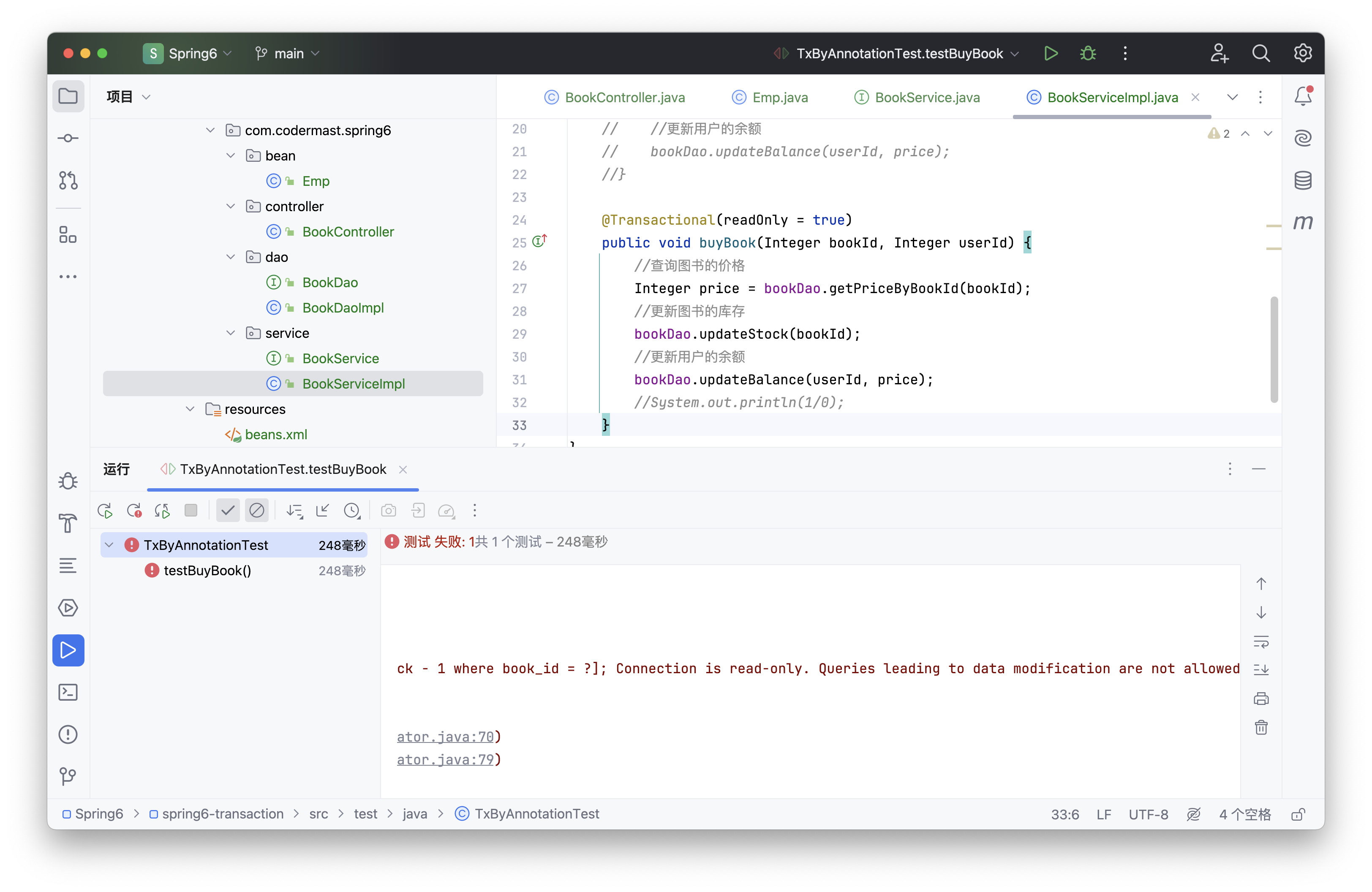 修改BookServiceImpl中buyBook()上,注解@Transactional的propagation属性