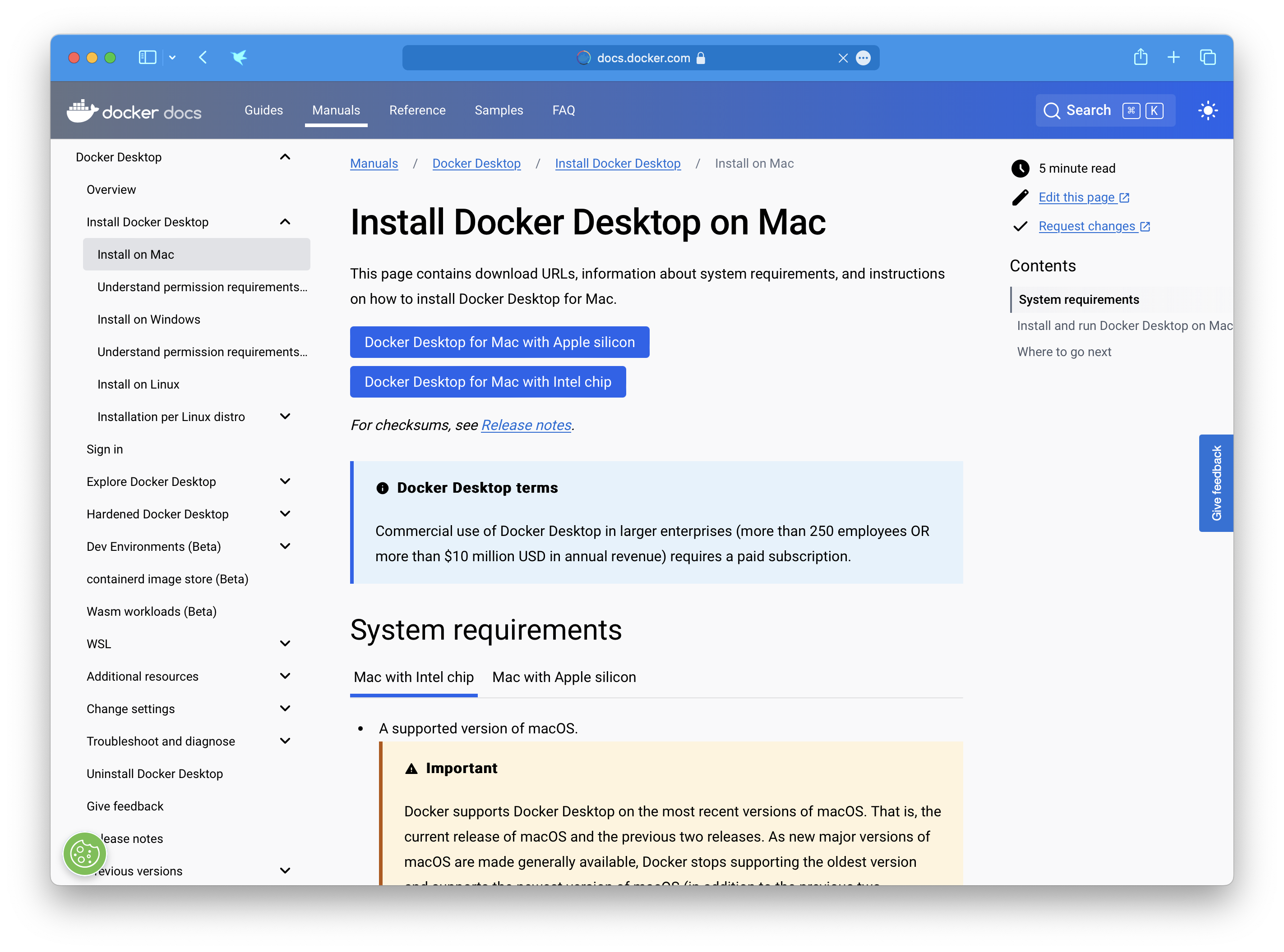 - Docker Desktop For MacOS:https://docs.docker.com/desktop/install/mac-install/